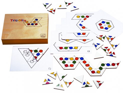 Obrázok sa môže vyložiť aj podľa vzorovej kartičky, podľa okrajových farebných vzorov, alebo podľa pravidiel triomina. Trojuhoľníky treba umiestniť vedľa seba tak, aby sme dostali súvislý perličkový reťazec. Oblasť rozvoja: -analýza-syntéza. |